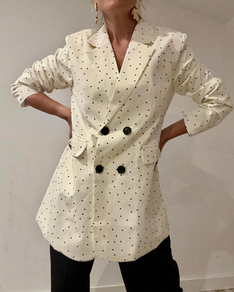 Blazer en color claro con estampado de lunares y cinturón ajustable. Elegante, versátil y con un toque femenino perfecto para cualquier ocasión.