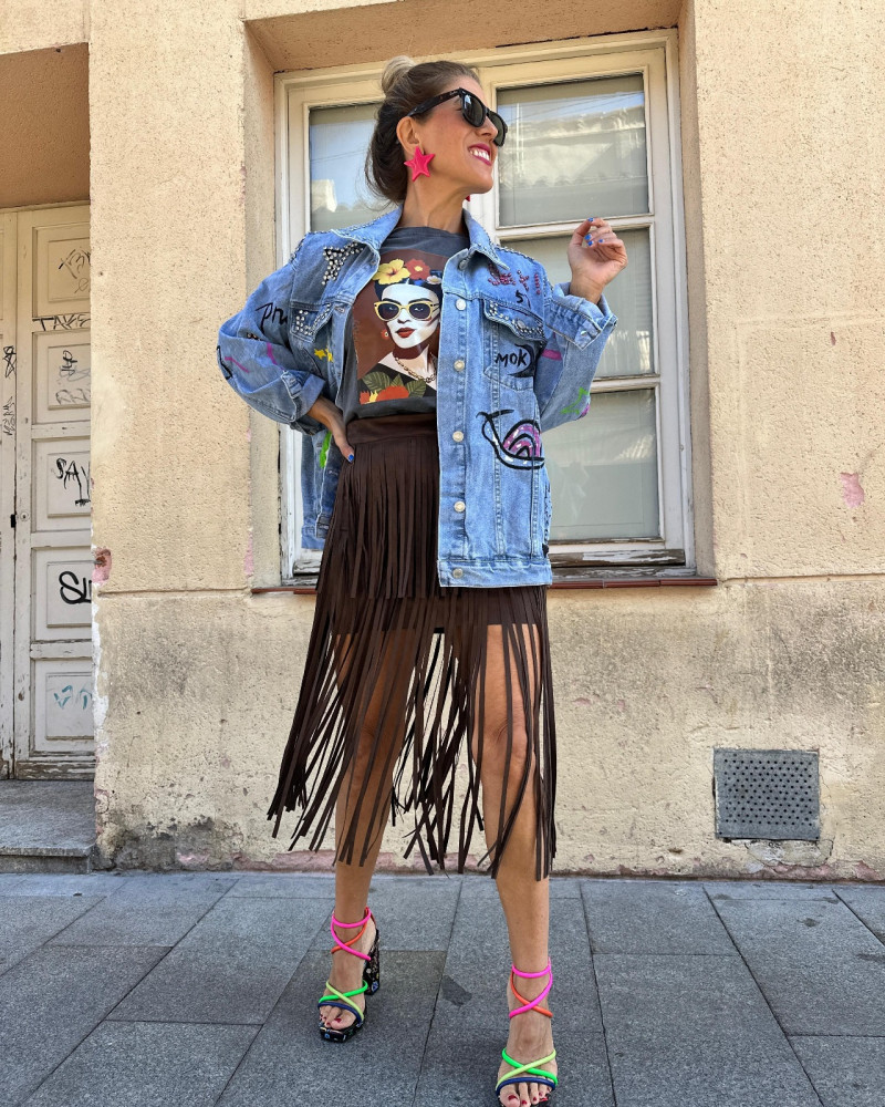 Dale un aire diferente a tu estilo con nuestra Falda de Flecos, una prenda versátil que combina moda y comodidad.