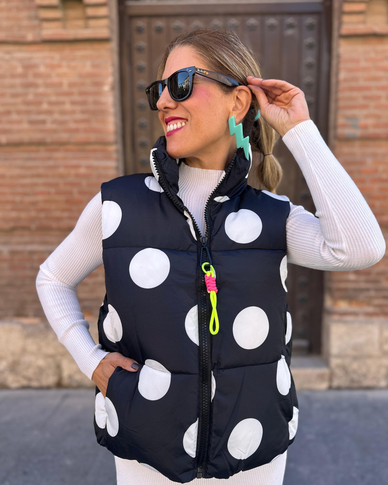Chaleco moderno con estampado de grandes lunares, ideal para destacar con estilo en cualquier ocasión.