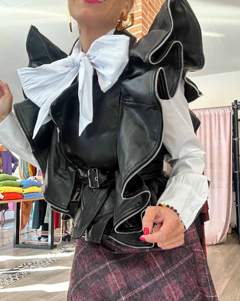Este chaleco es perfecto para combinar con camisetas, camisas o vestidos, aportando un toque rebelde y sofisticado.