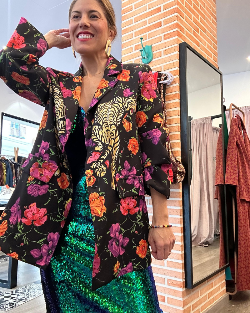 Blazer Edén una chaqueta ligera y elegante con estampado floral, ideal para dar un toque sofisticado y vibrante a cualquier look.