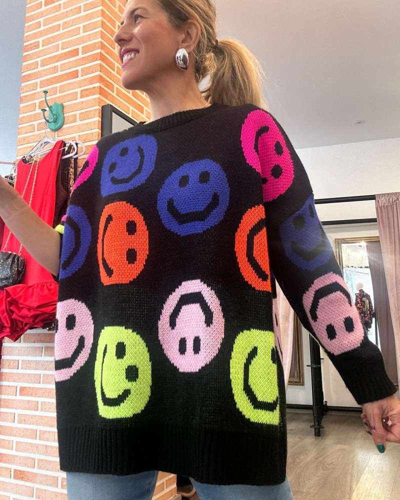Jersey divertido y original con estampado de caritas smile multicolor. Cómodo, moderno y perfecto para dar un toque alegre y juvenil a tus looks diarios.