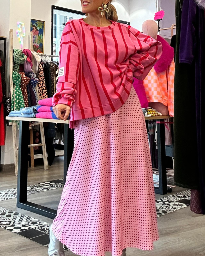 Sudadera de estilo oversize con estampado de rayas vibrantes, perfecta para un look cómodo, moderno y lleno de personalidad en tu día a día.