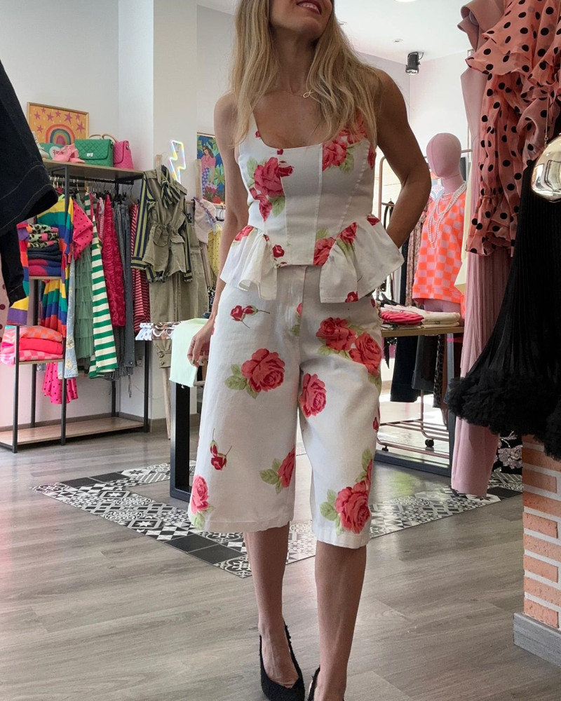 Bermuda Alba con estampado floral y corte elegante. Cómoda, fresca y perfecta para crear looks veraniegos con estilo.