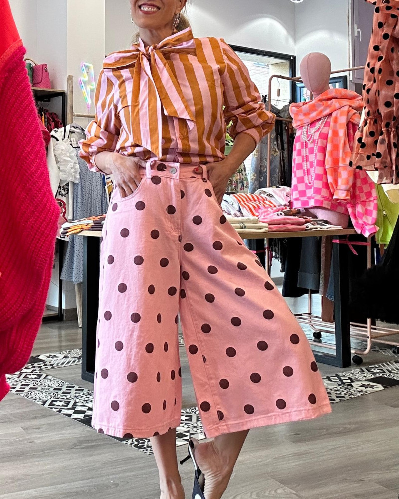 La Bermuda Lunares es una prenda divertida y elegante que aporta un toque femenino y moderno a cualquier outfit. Su estampado de lunares añade estilo y personalidad, convirtiéndola en una opción perfecta para los días más cálidos.