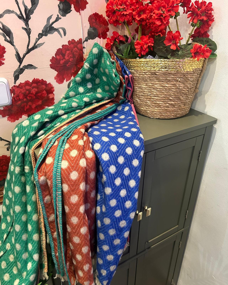 Elegante bufanda con estampado de lunares, suave al tacto y perfecta para dar un toque de color y estilo a cualquier look. Ligera, versátil e ideal para cualquier temporada."