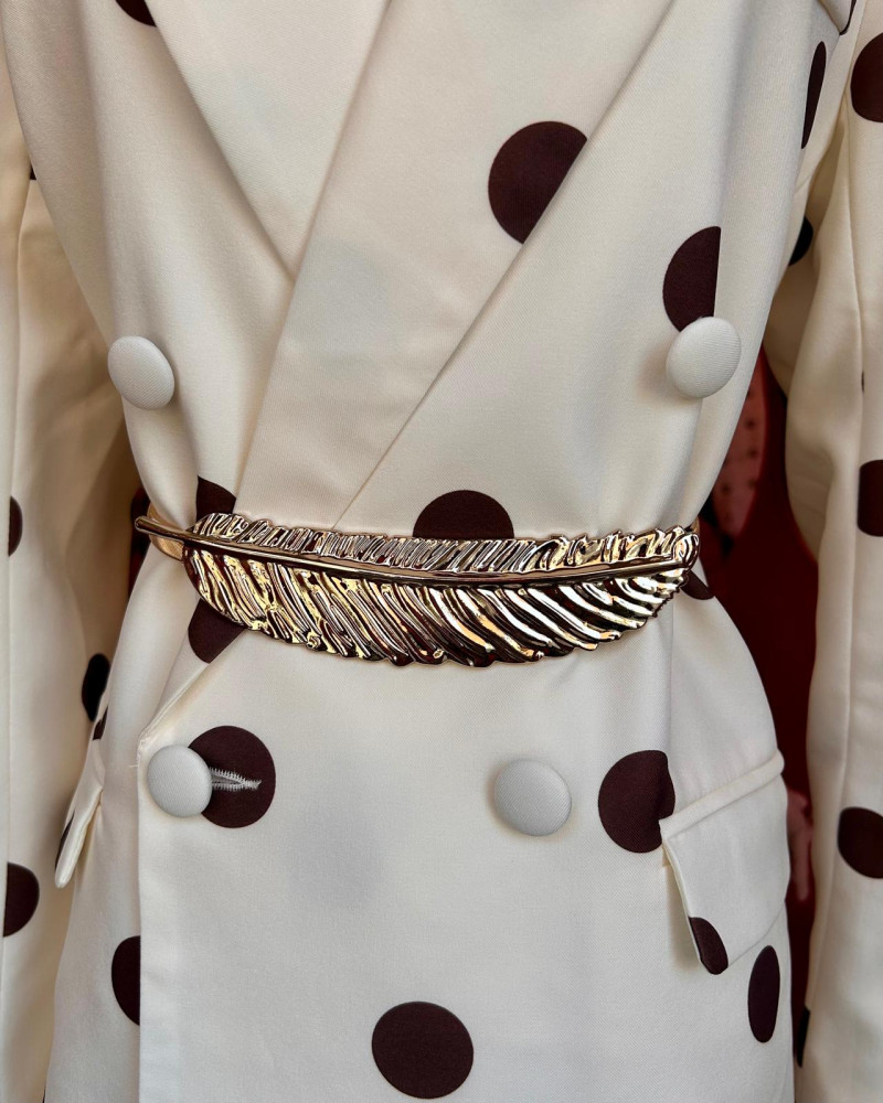 Añade un toque de distinción a tu armario con nuestro Cinturón Hoja. Este accesorio no es solo un cinturón, es una pieza de joyería diseñada para transformar por completo un estilismo sencillo en uno de alta gama. Su diseño detallado imita la delicadeza de las hojas naturales, creando un efecto visual de corona de laurel para tu cintura.