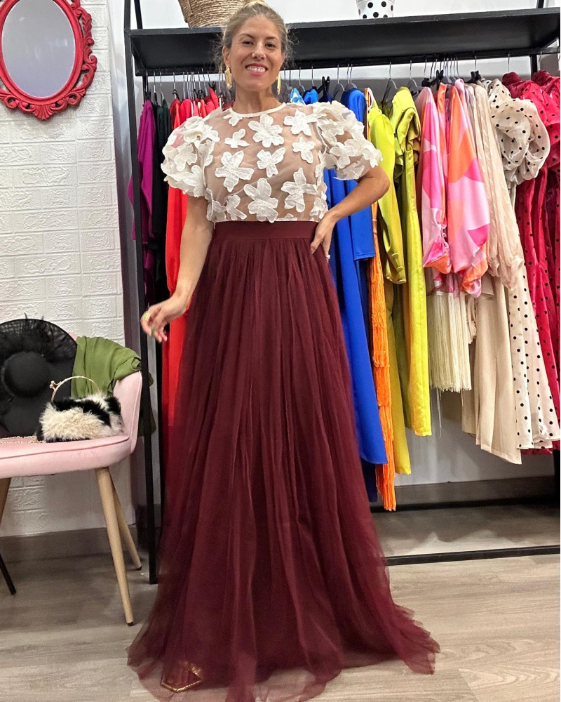 Falda larga de tul con caída elegante, perfecta para eventos, bodas o fiestas especiales