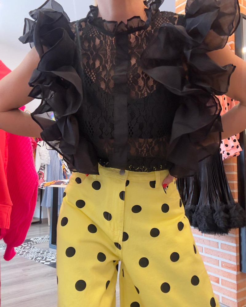 El Top de Encaje es una prenda delicada y elegante que aporta un toque femenino y sofisticado a cualquier look. Su diseño con encaje destaca por su estilo romántico y moderno, ideal para ocasiones especiales o para elevar un outfit casual.